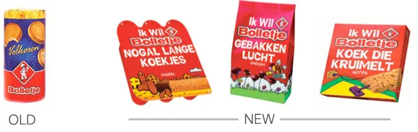 Bolletje is one of Holland's largest baked goods companies that makes cookies, breads & cereals (think Kellogg's or Nabisco). When it came to redesigning their packaging and their brand, they were smart enough to come to an advertising agency instead of a design house. Because they had too small a budget to spread over all 100 products, we proposed turning every package into an ad so that some of the marketing could be done straight from the shelves. First we gave each of their 100 products a personality changing all their proper names to something a bit more descriptive and humorous like 'Really Long Cookies' or 'Cookies that Crumble. Everywhere.' Then we had each package work like billboards with the CTA "I want Bolletje's (cookie name here)." Illustrations highlighted the product shots in a creative way which made shoppers want to see the rest of the packaging in the other sections of the store. The campaign was immediately successful and were able to compliment each package with a 10 second commercial which boosted Bolletje's sales even more.