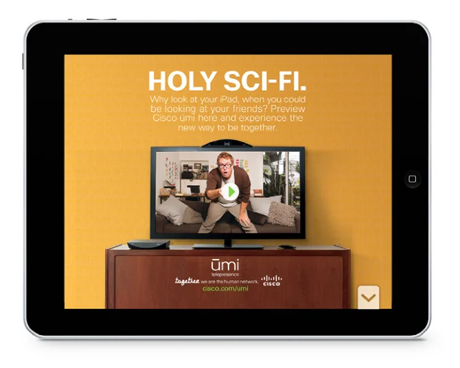 Cisco was launching one of it's first consumer products and we needed a big campaign to get the word out there. We approached Ellen Page to literally test drive Umi (think a better, cooler version of Skype for your TV) with her friends and family while we kept the cameras rolling. The campaign would all be EGC - Ellen Generated Content. Her friends, the conversations and the reactions were unscripted. 12 spots were released but if we had limitless funds to be able to color/transfer/mix everything we had captured, we could have made 50 legit spots that were all good. These are just a couple of my favs: