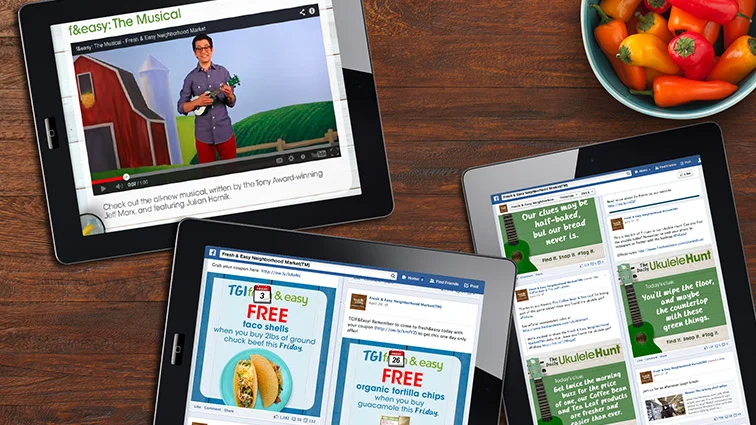 Social Content. Just a couple highlights... A talking piece of in-store POS surprises F&Easy shoppers, real-time Instagram video responses, a grocery store musical, TGI-F&Easy and a ukelele treasure hunt on Facebook.
